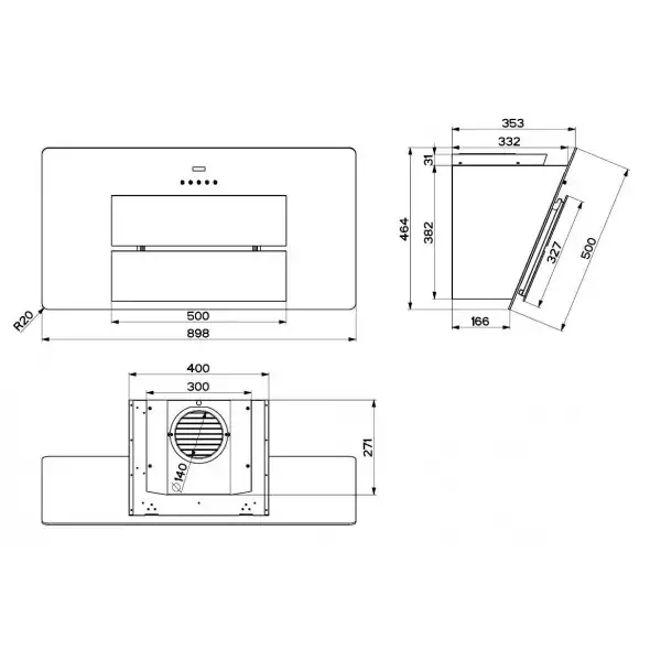 - Recommended positioning height above hob: 450-MM