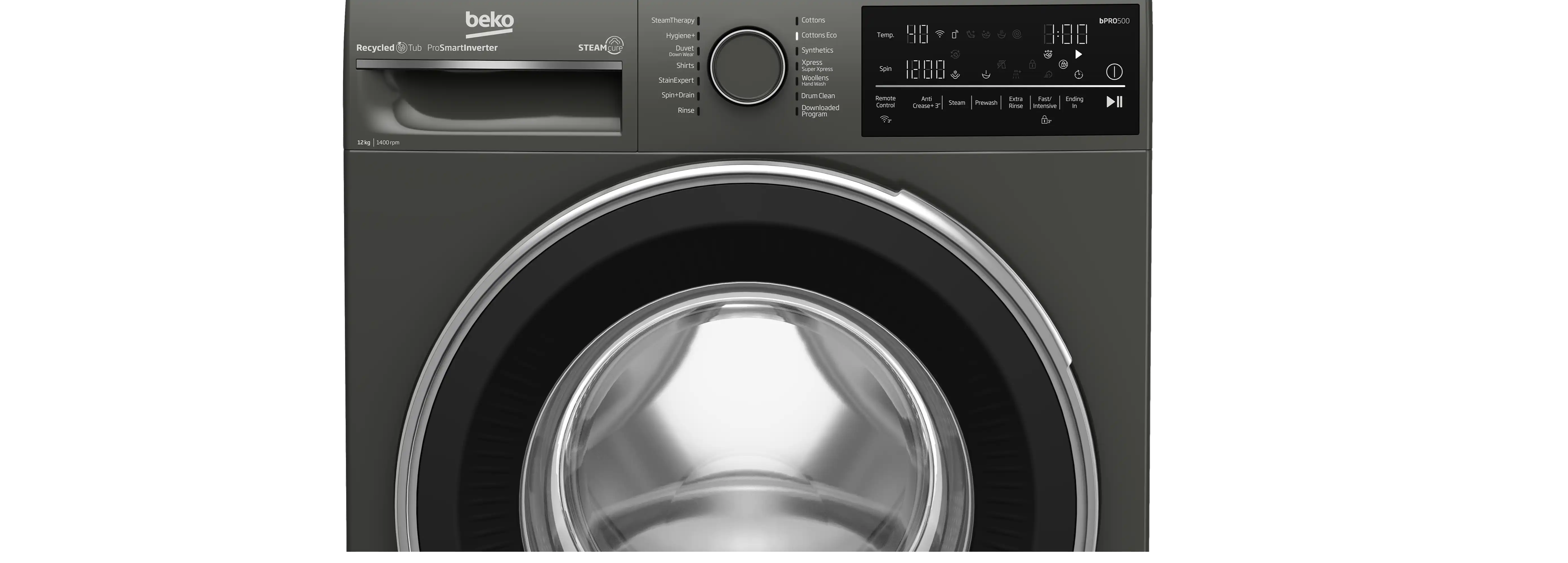 Beko Inverter Front Load Washing Machine , 12 kg , 1400 rpm, Manhattan Grey - B3WFU51240MCI