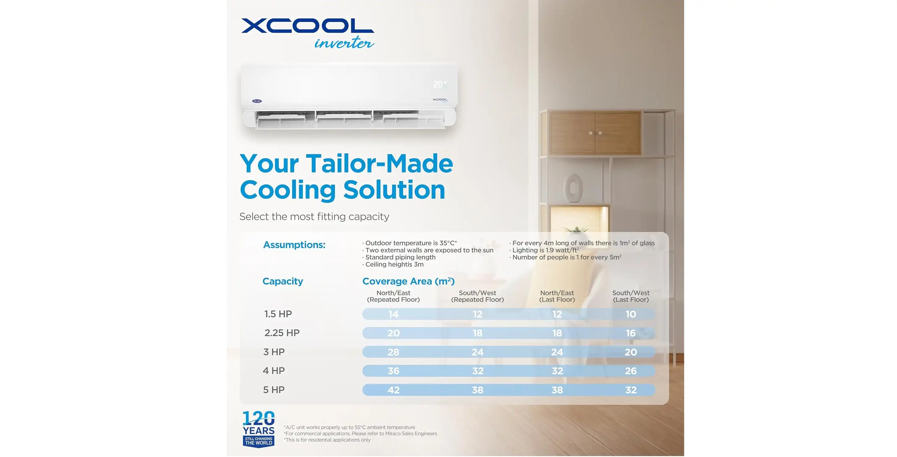 - سوبر تروبيكال T3 : يعمل بفريون R32 صديق البيئة حتى درجات حرارة خارجية تصل الي 55 درجة مئوية.