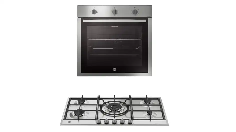 طقم بلت إن هوفر مسطح بلت إن، 5 شعلة غاز، 90 سم، فضي - HVG94K3X EGY + فرن بلت إن غاز، 70 لتر، 60 سم، استانلس ستيل / أسود - HOU611G6-EGY