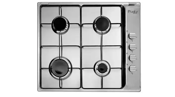 طقم بلت من بيوريتي مسطح بلت ان 4 شعلة غاز، فضى، 60 سم مع شفاط، 60 سم، فضى مع فرن غاز بشوية، 76 لتر، 60 سم - اسود / فضى