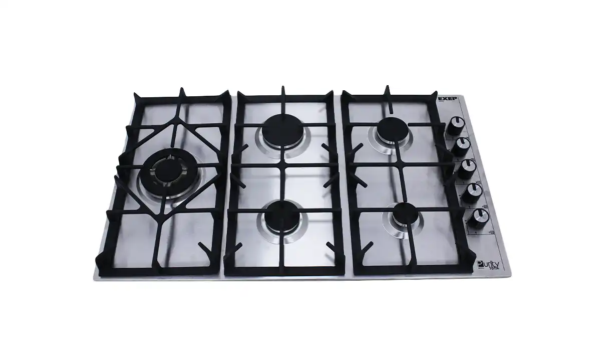 طقم بلت من بيوريتي مسطح بلت ان 5 شعلة غاز ، فضى، 90 سم مع شفاط هرمى، 90 سم، فضى مع فرن غاز بشوية، 97 لتر، 90 سم - اسود / فضى