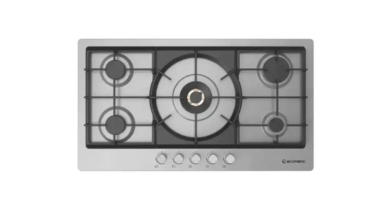 طقم بلت ان ايكوماتيك مسطح، 5 شعلة، 92 سم، استانلس ستيل - S983XLPROX-LARGE + فرن بلت ان غاز ديجيتال بشواية، 64 لتر، 60 سم، ستانلس ستيل / اسود - G6414T