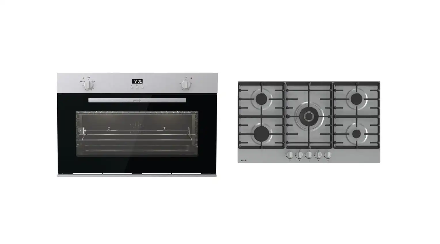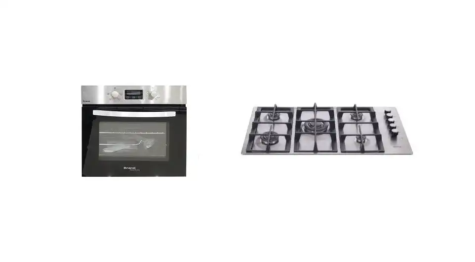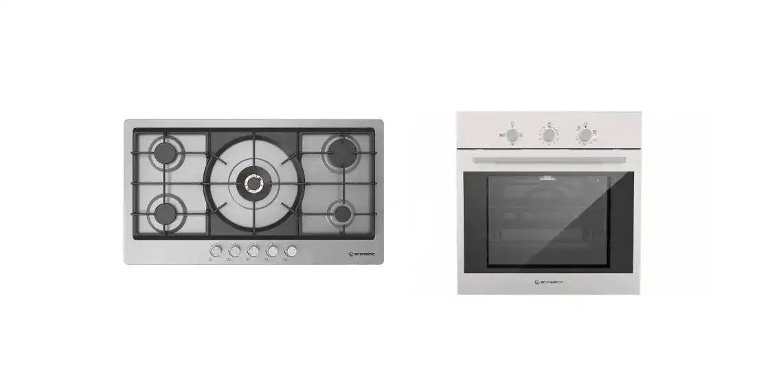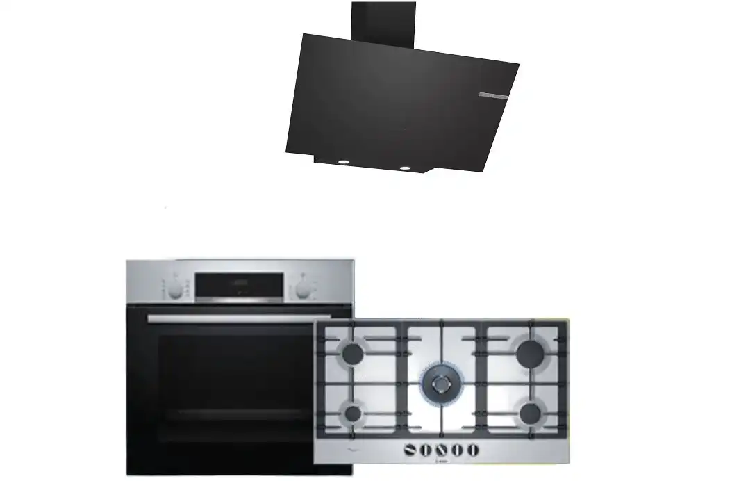 طقم بلت ان ايكوماتيك مسطح، 5 شعلة، 92 سم، استانلس ستيل - S983XLPROX-LARGE + فرن بلت ان غاز ديجيتال بشواية، 64 لتر، 60 سم، ستانلس ستيل / اسود - G6414T