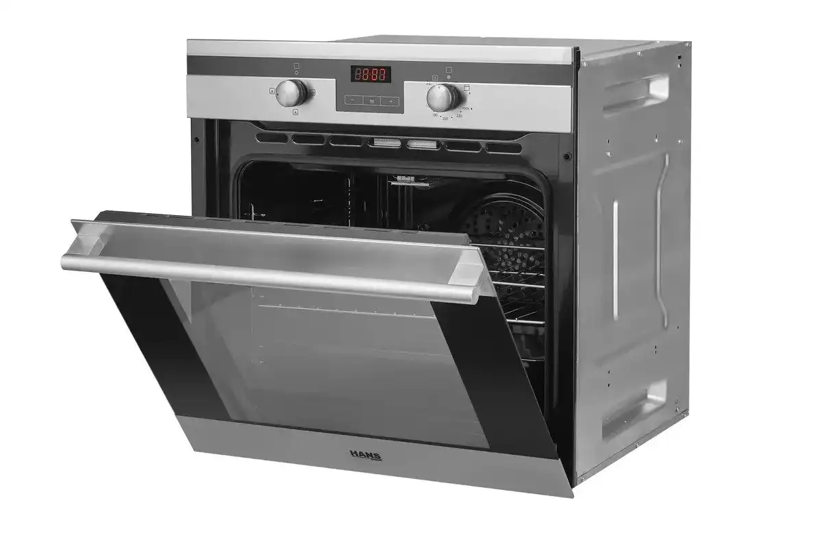 فرن بلت ان هانز،67 لتر ، غاز، ديجيتال، شواية، مروحة، فريم ستيل،60 سم، زجاج أسود - HANS OGO202-12