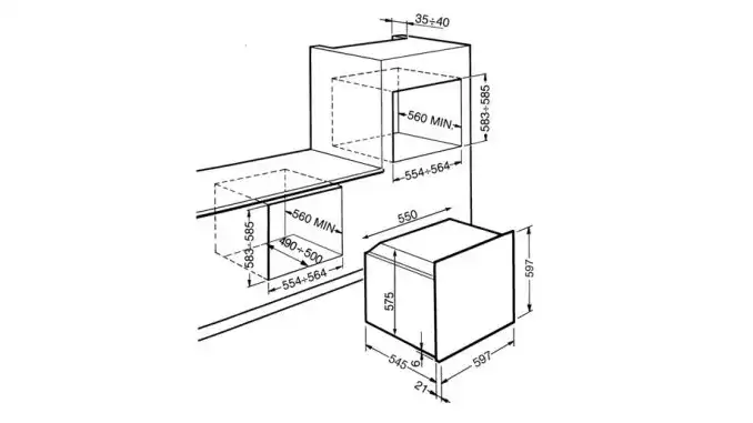 - فرن مدمج منخفض الارتفاع 38 سم