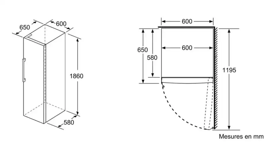 - أبعاد المنتج: 1860 × 600 × 650 مم