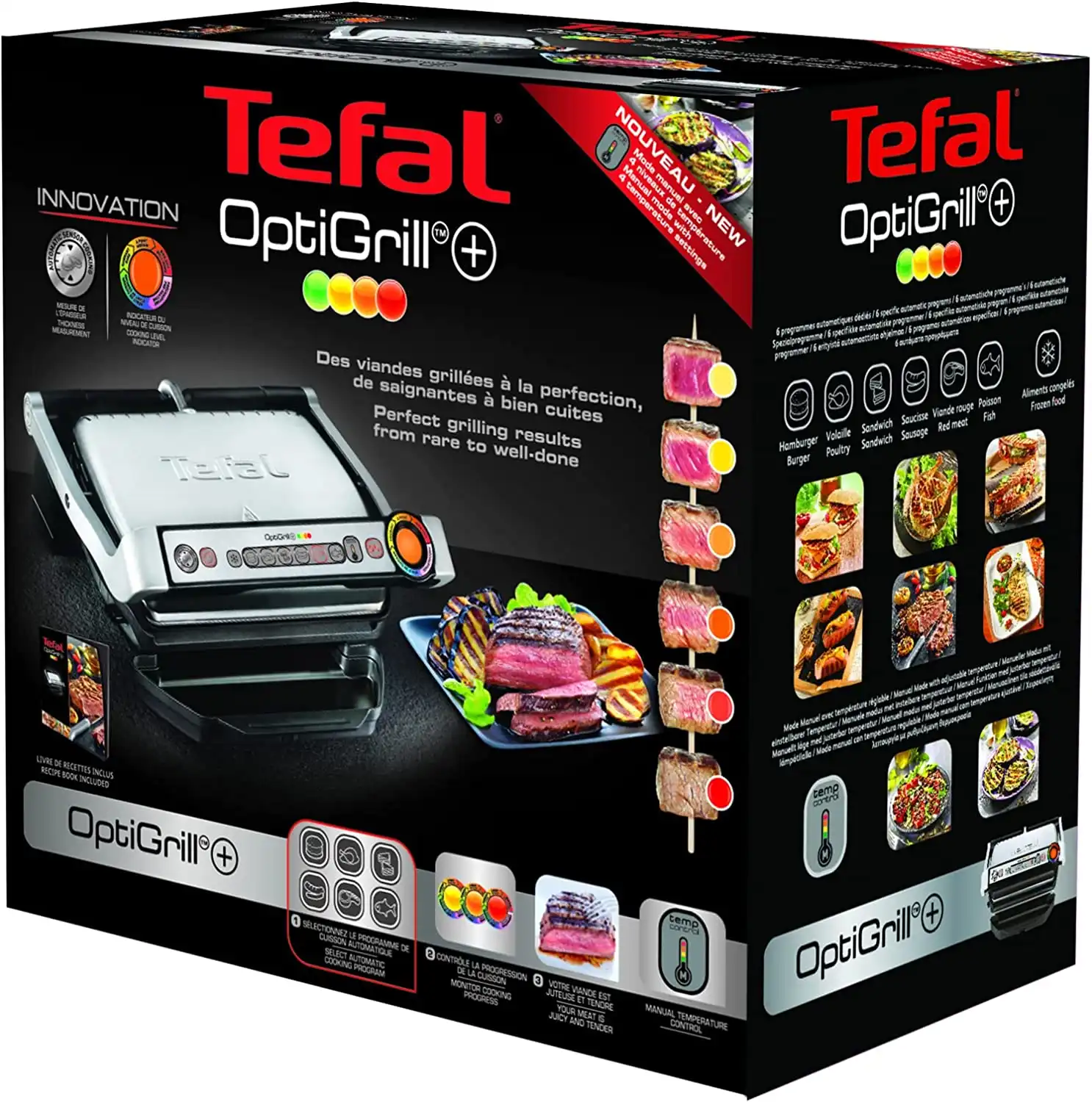 - قم بالشواء كالمحترفين بفضل إعدادات درجة حرارة الشواء التلقائية حسب قياس سمك الطعام.