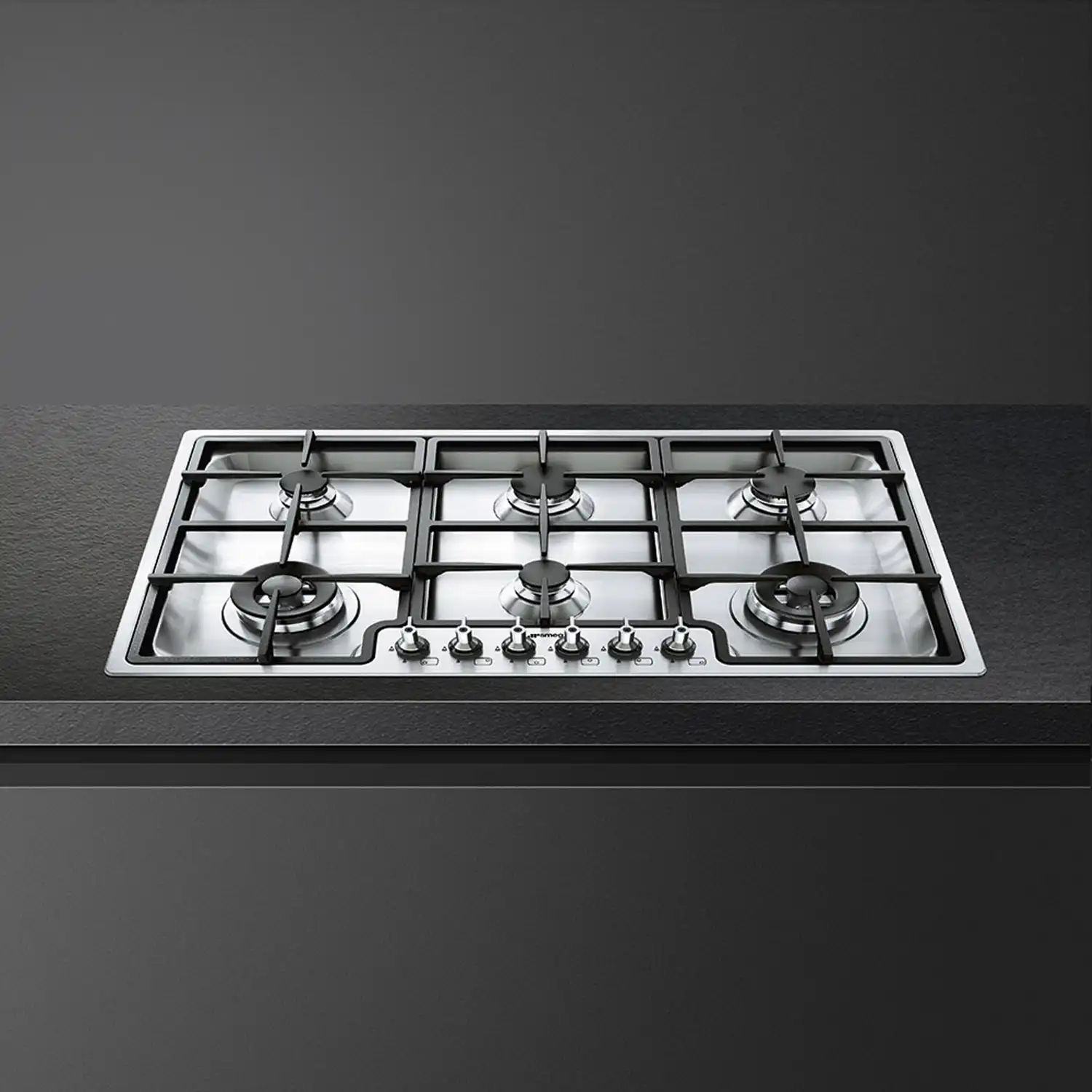 سميج مسطح بيلد ان 6 شعلة غاز 90 سم حوامل زهر تحكم امامي امان كامل ستانليس ستيل PGF 96