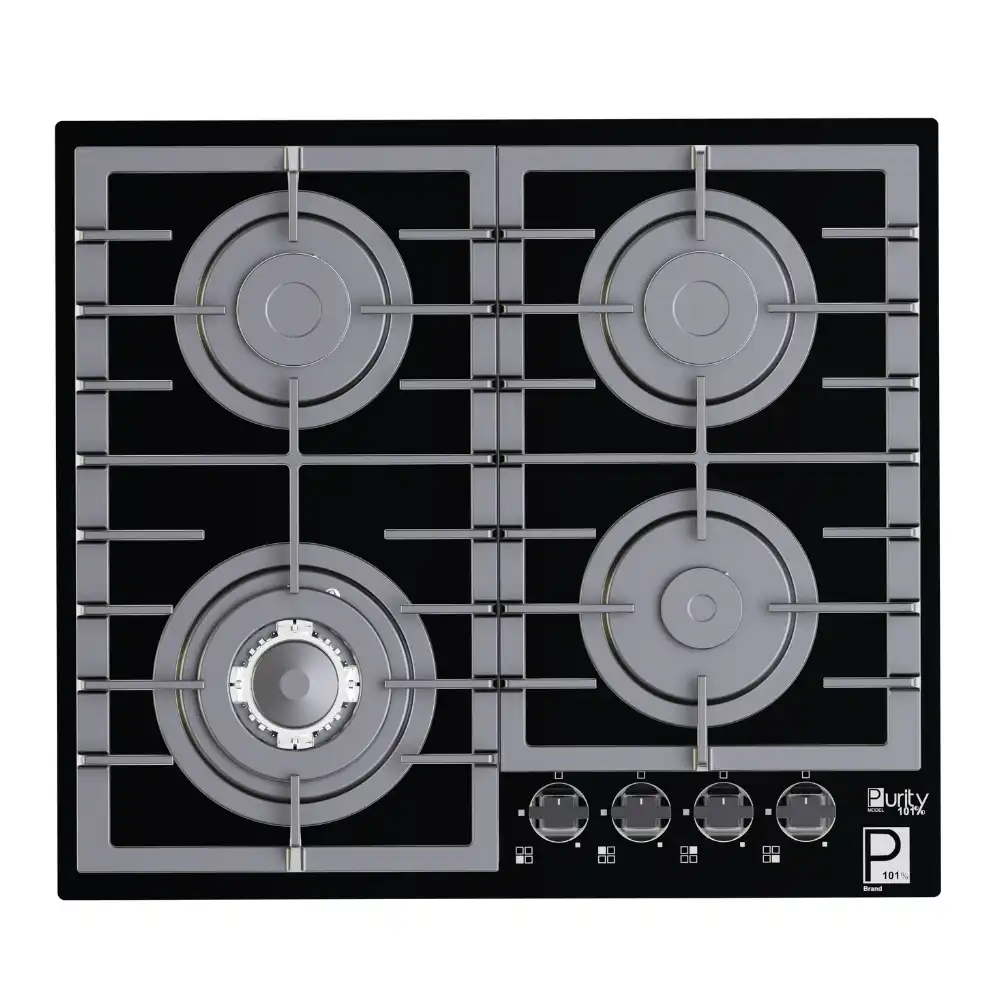 مسطح من بيورتي، 4 شعلة غاز، حوامل زهر ثقيلة، 60 سم، أسود - HPT603G