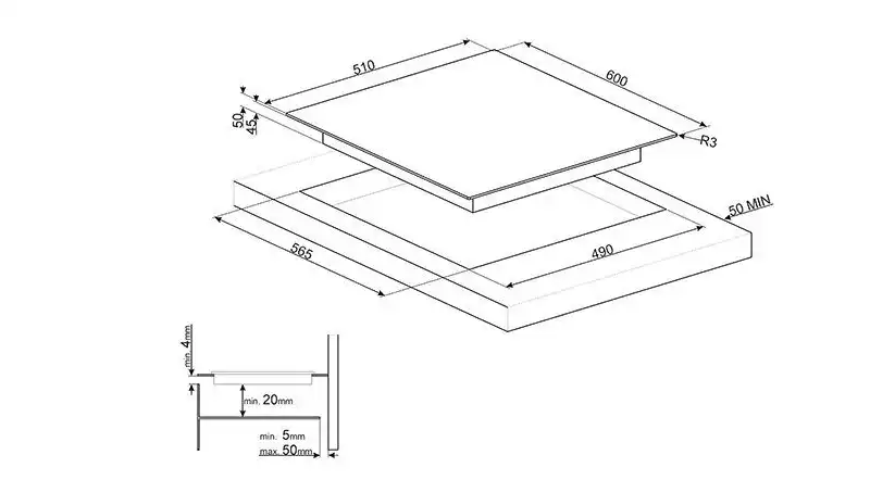 - أبعاد المنتج (مم): 50 × 600 × 510