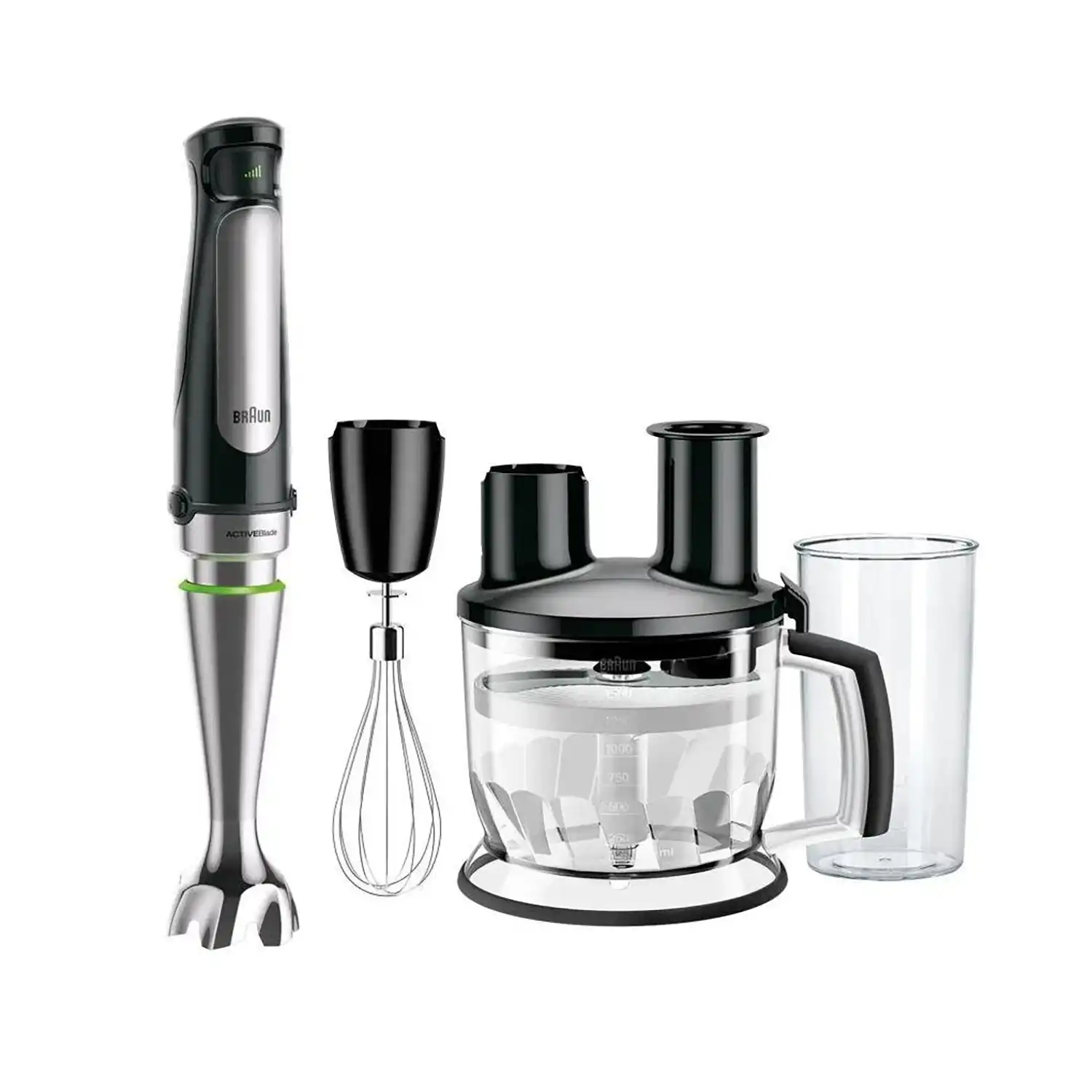 هاند بلندر ميانتا تربو بلس بالملحقات، 500 مل، 1000 وات، فضي / اسود - HB111438A
