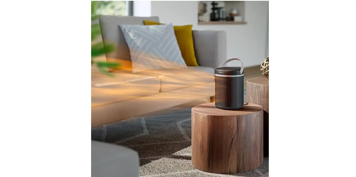 سهل الحمل: بفضل وزنه الخفيف (١.٧ كجم فقط) ومقبضه المصنوع من الجلد الصناعي الفاخر، يمكنك نقله بسهولة من غرفة إلى أخرى.