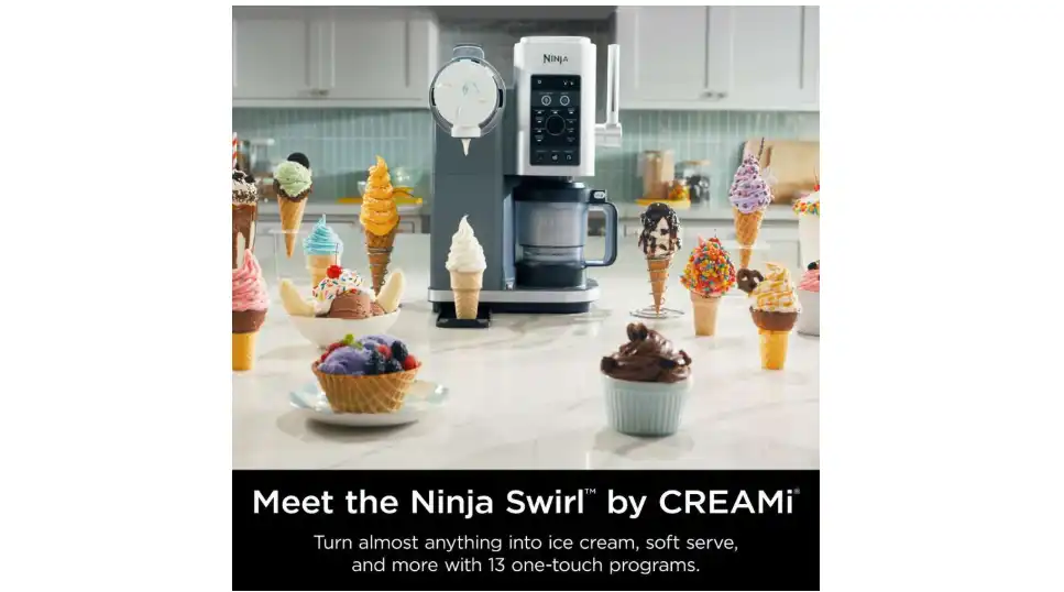 حوّل كل يوم إلى يوم احتفال مع Ninja Swirl by CREAMi 13‑in‑1 — ماكينة فريدة لصنع الآيس كريم والسوفت سيرف والحلويات المجمدة بكل سهولة في منزلك. بلمسة زر واحدة، يمكنك إعداد 13 نوعًا من الأطباق المثلجة التي يحبها الجميع!