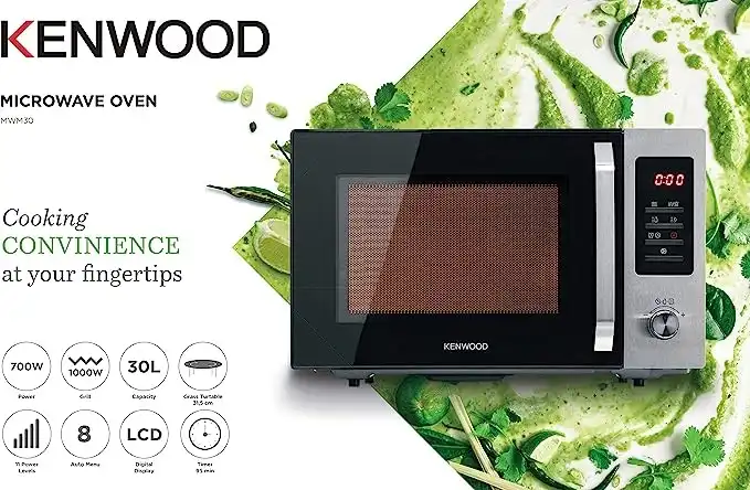 ميكروويف كينوود بشواية، 30 لتر 1000 وات، فضي / أسود - MWM30.000BK