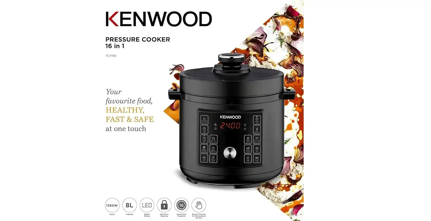 حلة ضغط كهربائية من كينوود 16 في 1، سعة 8 لتر، 1300 واط، أسود - PCM95.000BK (ضمان دولي)