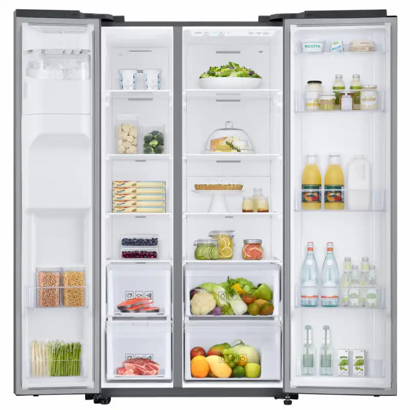 ثلاجة سامسونج ببابين متقابلين مع مبرد مياة، 634 لتر، فضي - RS68A8820S9/MR