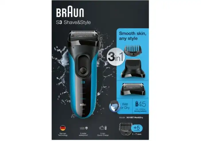 ماكينة حلاقة كهربائية للرجال من براون Series 3، استخدام جاف ورطب، أزرق- 3010BT