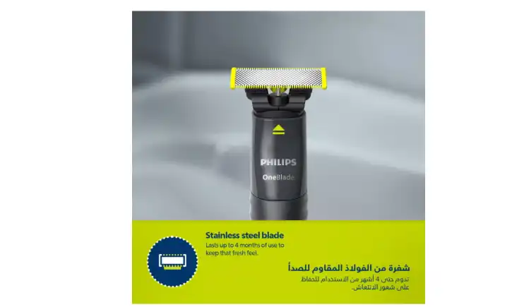 - فيليبس ون بليد هي أداة جديدة، تُمكّنك من تشذيب الشعر وحلاقته ورسم خطوط وحواف دقيقة، مهما كان طوله. انسِ عناء الخطوات والأدوات المتعددة، فـ ون بليد تُلبي كل احتياجاتك.