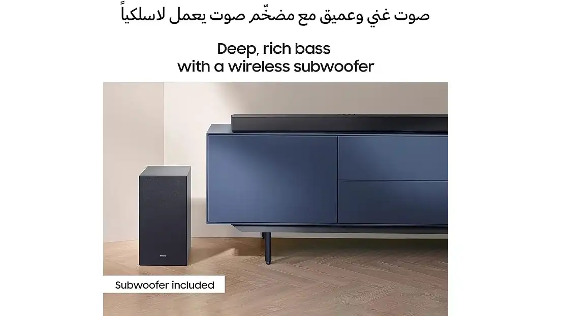 - Dolby Digital 2.0/DTS Virtual: X يتيح لك تجربة تأثيرات ثلاثية الأبعاد رائعة، بينما يوفر مضخم الصوت اللاسلكي المضمن صوتًا قويًا