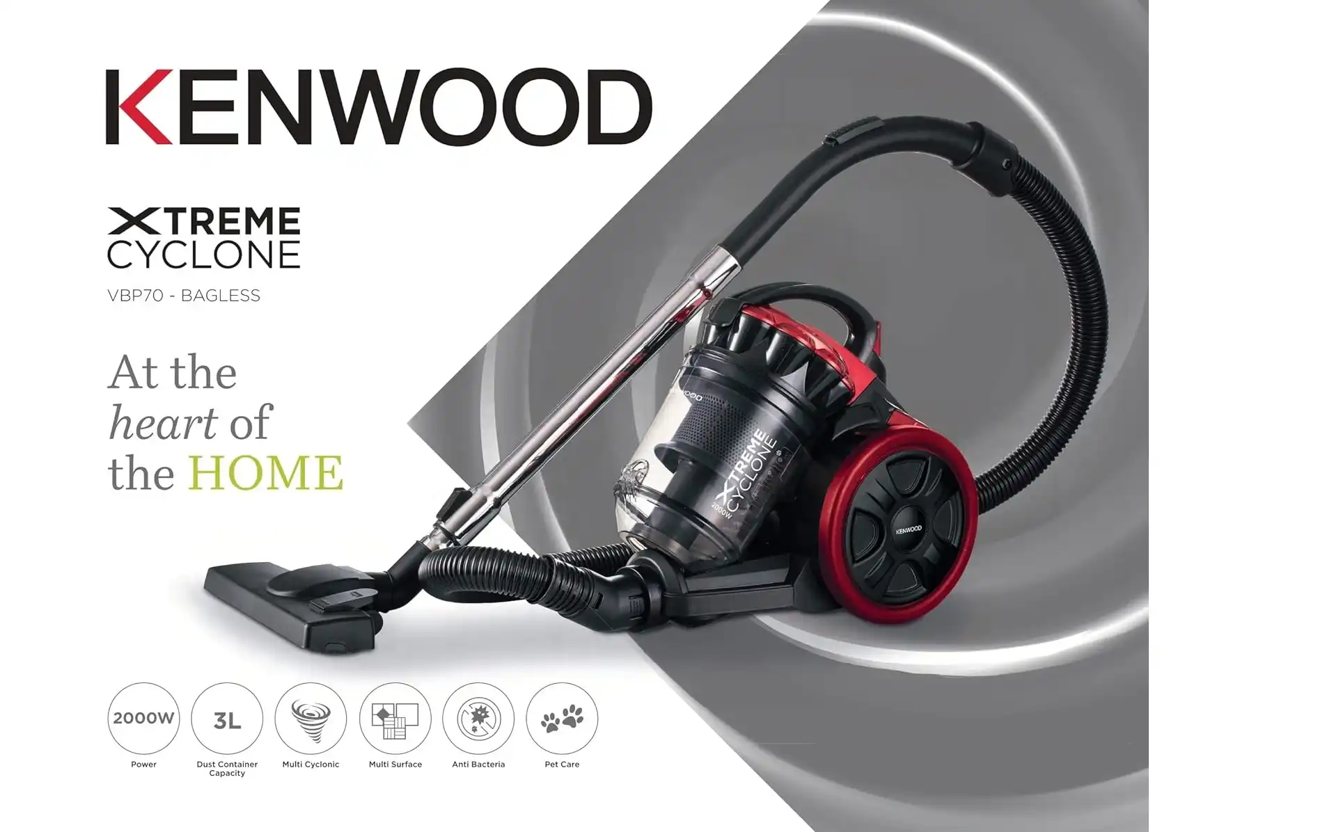 مكنسة كهربائية كينوود اكستريم سايكلون بدون كيس، 2000 وات، اسود / احمر - VBP50