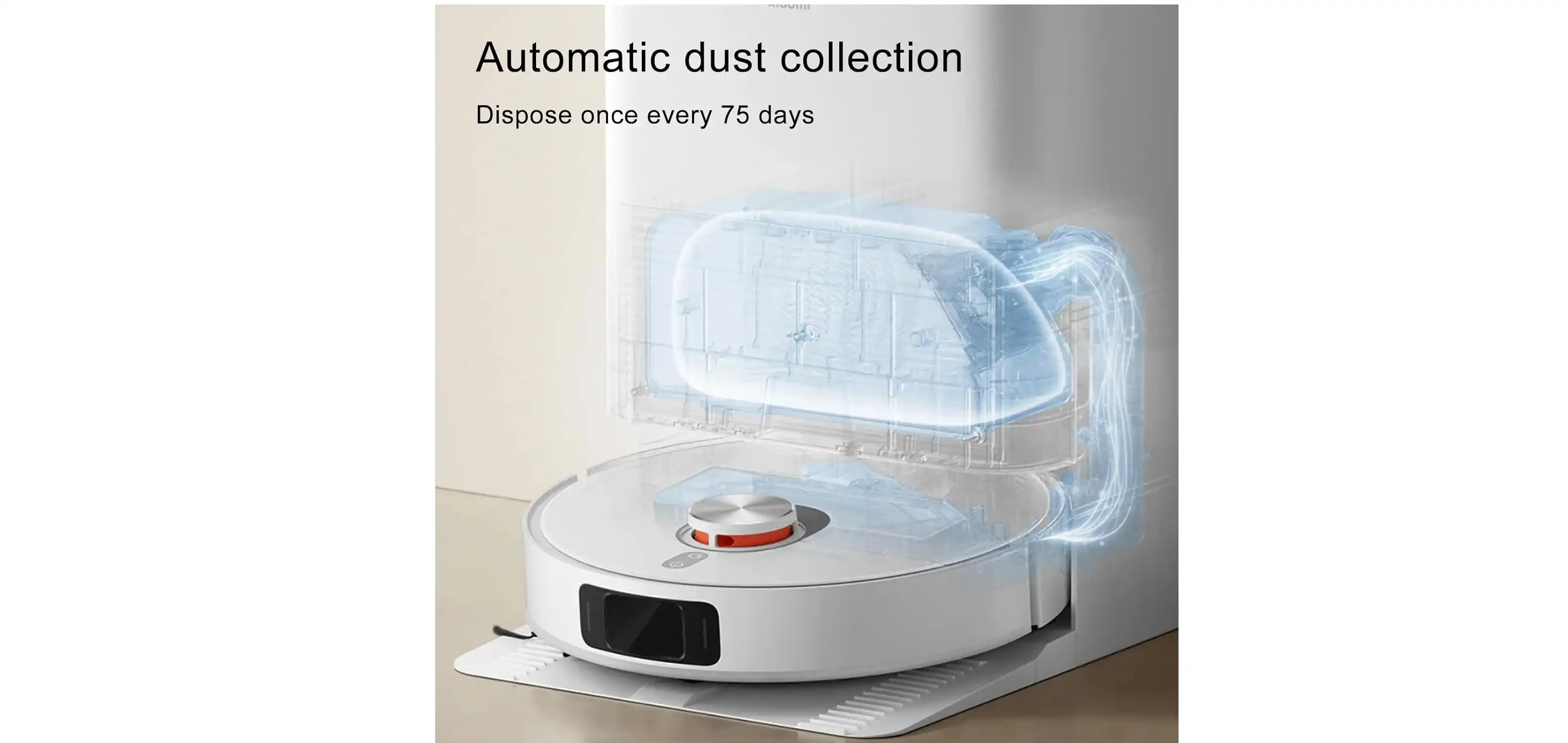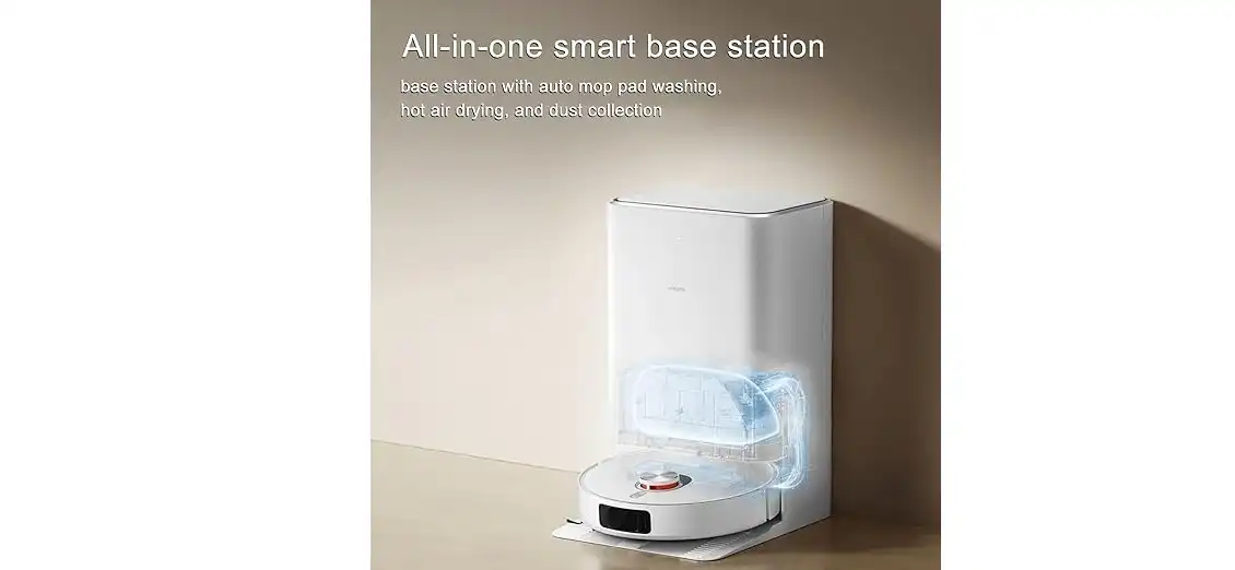- قاعدة ذكية متعددة الوظائف تقوم بـغسل وتجفيف الممسحة تلقائيًا وجمع الغبار في كيس سعة 2.5 لتر.