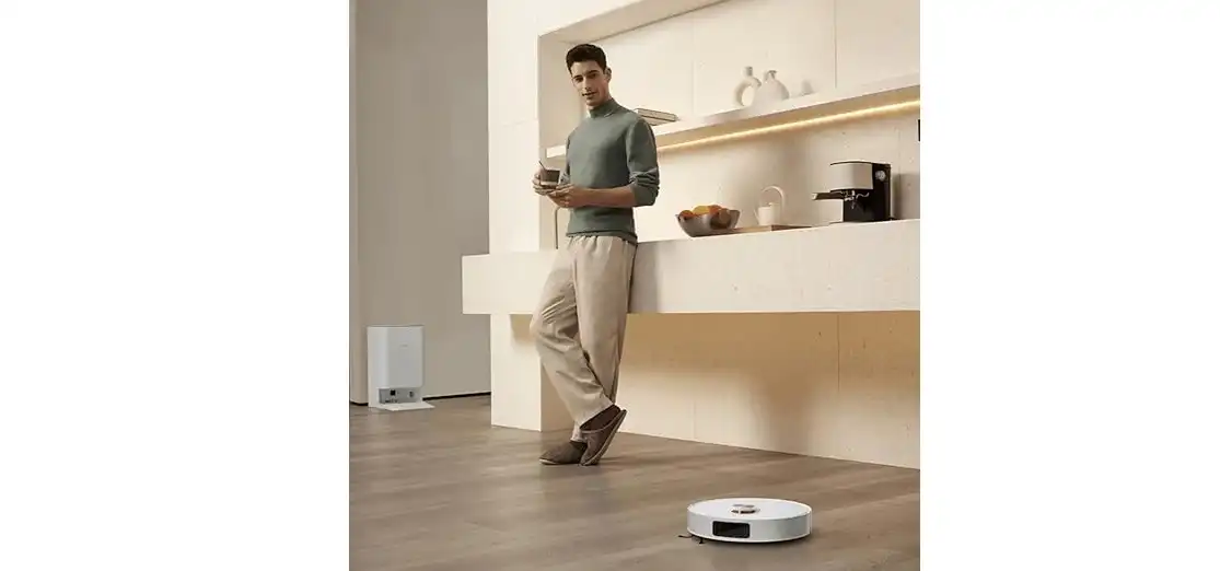 - قاعدة ذكية متعددة الوظائف تقوم بـغسل وتجفيف الممسحة تلقائيًا وجمع الغبار في كيس سعة 2.5 لتر.