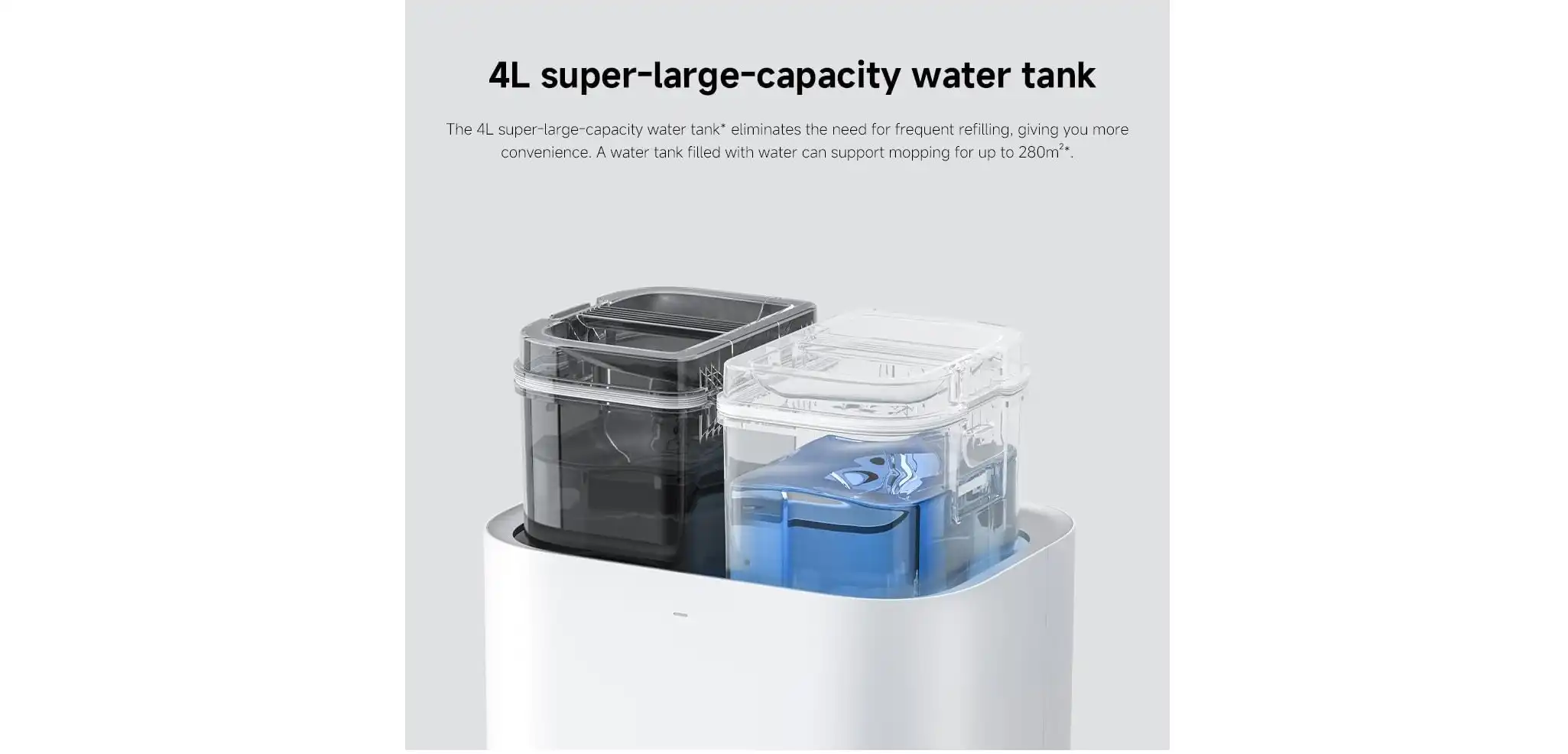 - خزان مياه كبير: يأتي الجهاز مزودًا بخزان مياه بسعة 4 لتر، مما يقلل الحاجة إلى إعادة ملئه بشكل متكرر أثناء عملية المسح.