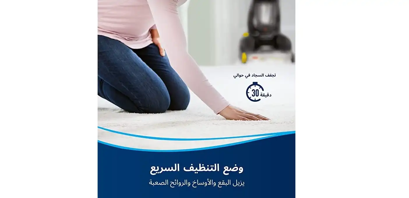 - وضع التنظيف السريع لتنظيف مثالي: يحتوي على 12 صف من الفرشاة الدوارة المزدوجة التي تعمل باحتراف لإزالة البقع والأوساخ والروائح. وضع التنظيف السريع يعمل على تنظيف السجاد ويتركه ليجف خلال ثلاثين دقيقة فقط.