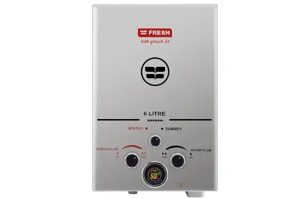 سخان مياه غاز فريش 6 لتر، شاشة رقمية، ادابتور، فضي - 500011089