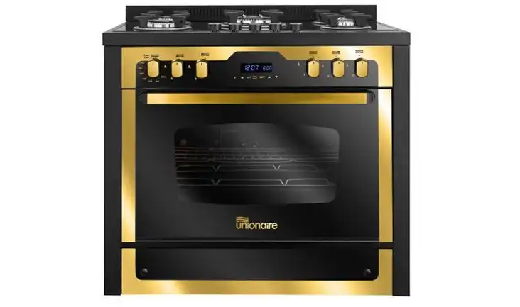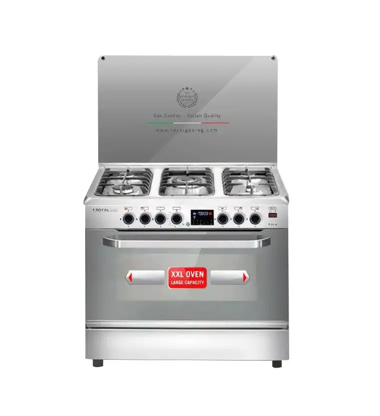 بوتاجاز غاز رويال ماستر شيف سنسور، 5 شعلة، شاشة ديجيتال، مروحة، كاست امان كامل, 80 سم ، أسود / سيلفر - 2010290