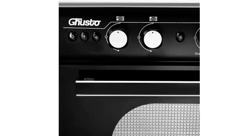 بوتاجاز يونيون اير جوستو، 5 شعلة، شواية و مروحة فرن، نصف امان، 80x60 سم أسود - C68SSB-DC-443-SOF-GU-AL