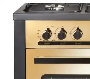 - السطح والفرن والشواية ولوحة التحكم مصنوعة من الزجاج الأسود بحلية ذهبي