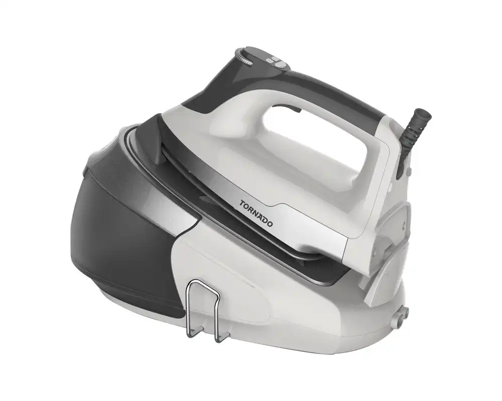 تورنيدو مكواة مولدة للبخار بقاعدة سيراميك غير قابلة للالتصاق، 2400 واط، رمادي / أبيض - TSS-2400