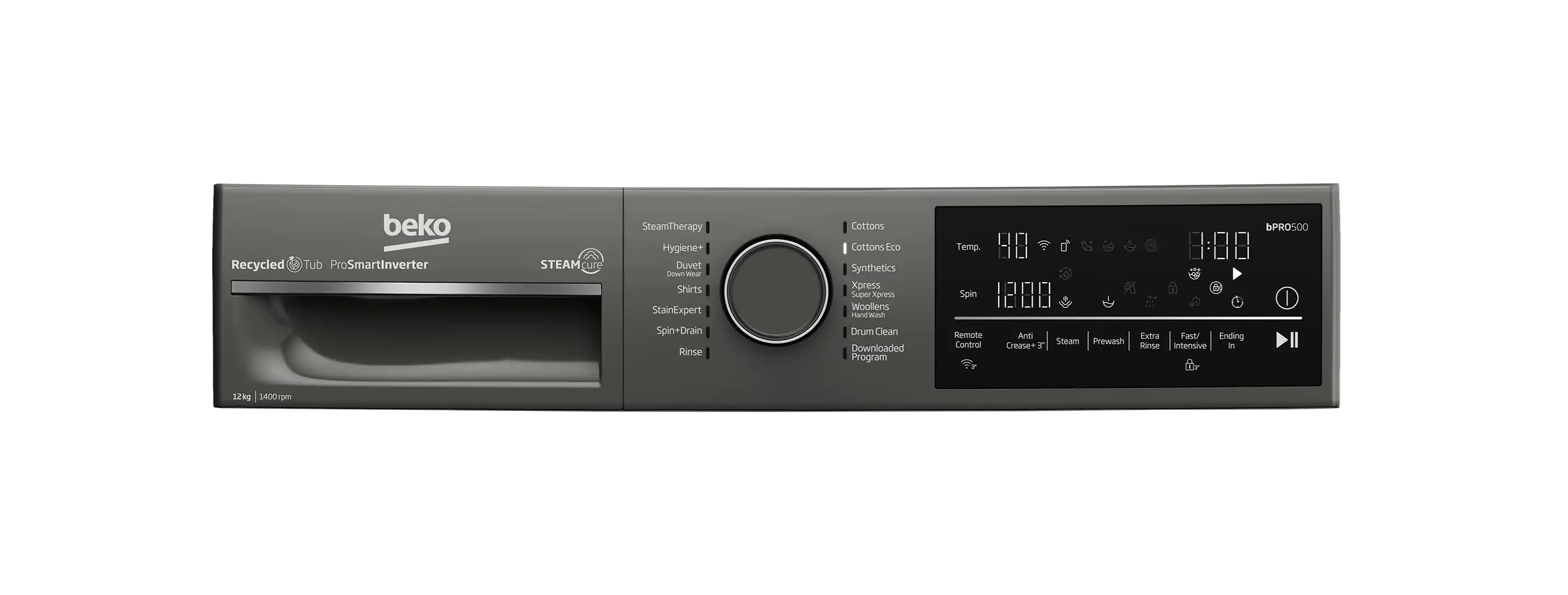 غسالة ملابس فول اتوماتيك بيكو، سعة 12 كجم، تحميل أمامي، انفرتر ، 1400 دورة في الدقيقة، رمادي - B3WFU51240MCI