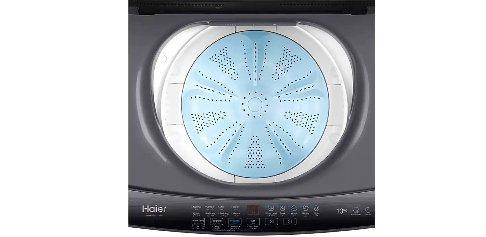 غسالة ملابس فوق أوتوماتيك هاير، 13 كيلو، ديجيتال، تحميل علوي، رمادي - HWM130-316S8