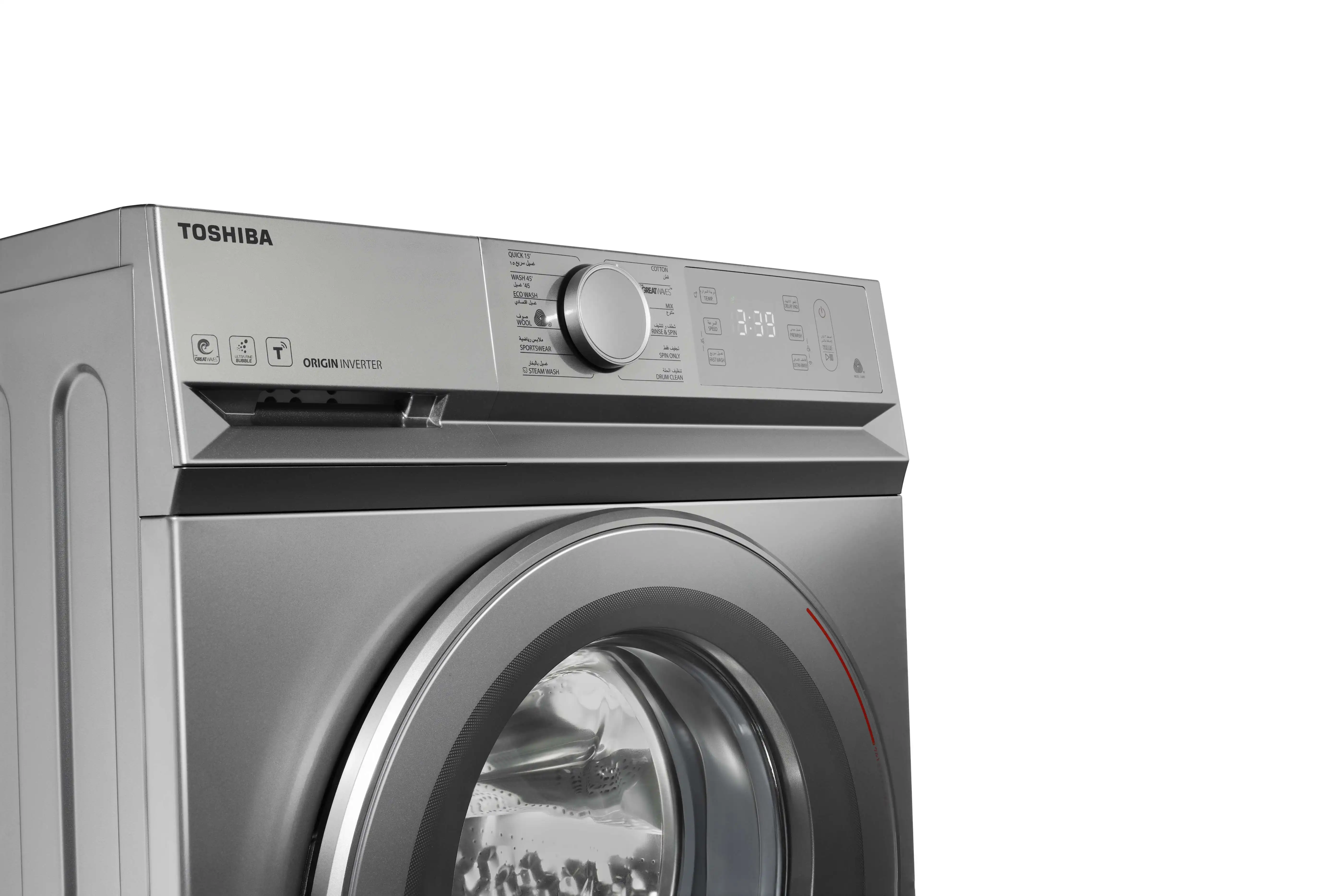 غسالة ملابس اوتوماتيك توشيبا تحمل امامي، 8 كجم، موتور انفرتر، فضي - TW-BL90A4EG(SS)