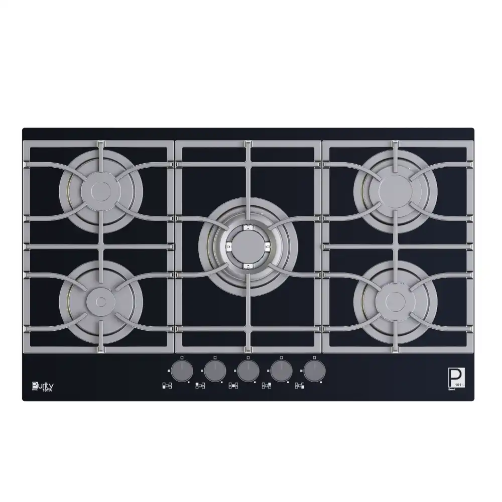 purity Gas Hob, 5 Burners, Heavy Duty Grids, 90 Cm, Black - HPT913G