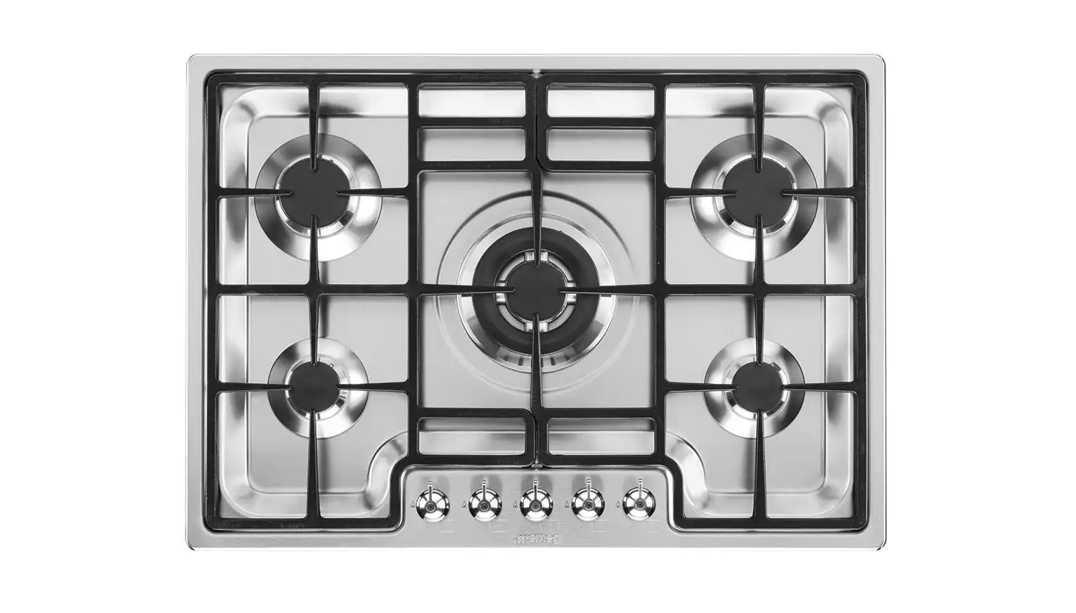 SMEG Gas Hob, 5 Burners, Cast Iron Stands, 75 cm, Stainless Steel - PGF75