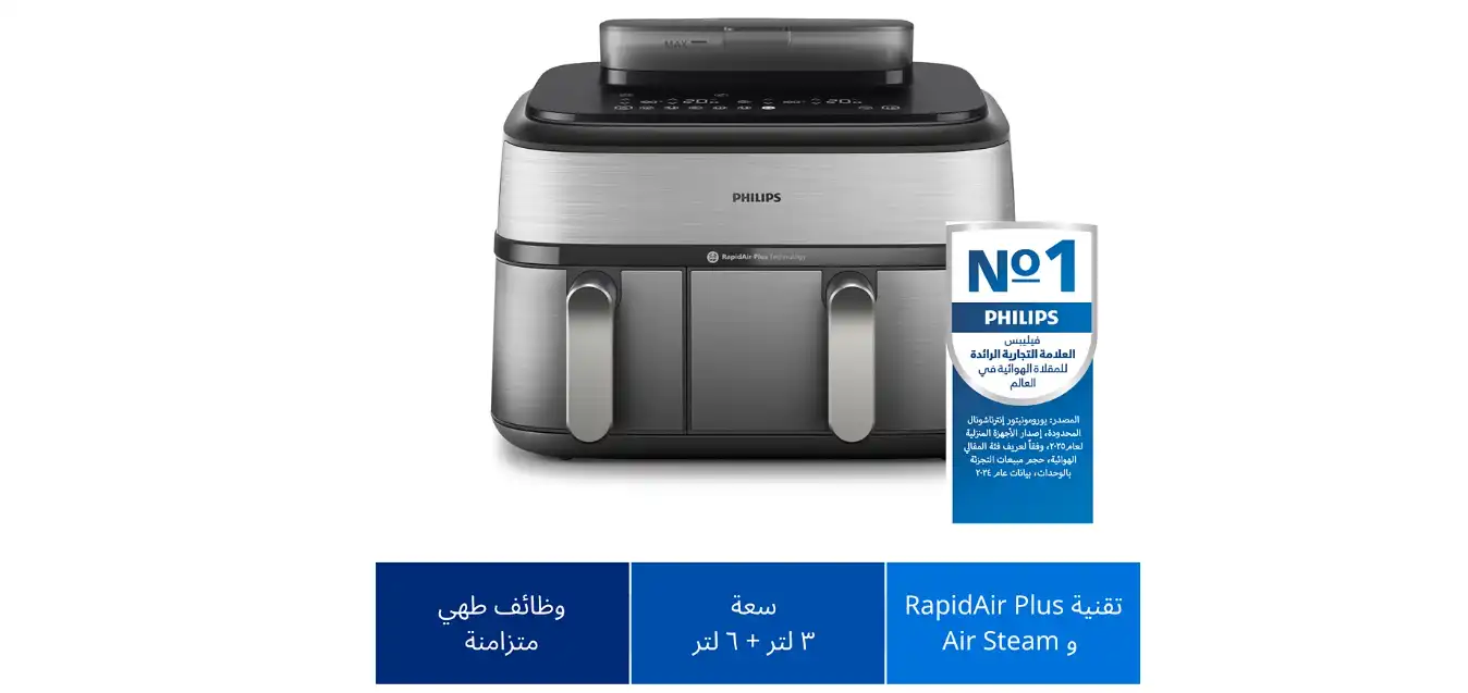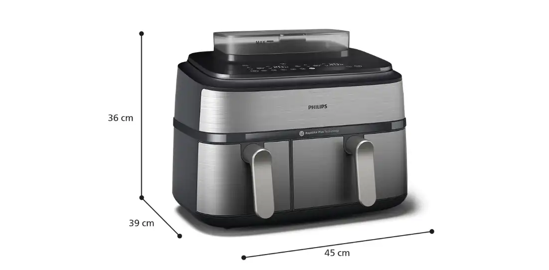Philips 3000 Series Dual Basket Steam Air Fryer, 9 L, 2750 W, Black - NA555/09
