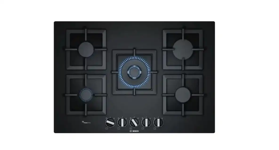 - Bosch Bundle of Built Gas Hob 5 Burners, 75 cm, Glass Black - PPQ7A6B20