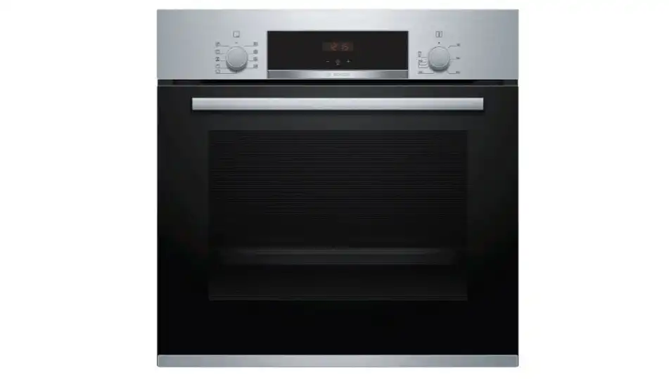 Bundle of Bosch 5 Burners Gas Built-In Hob, Silver, 75 cm With Hood, 90 cm, Black with Electric Oven with Gril, 66 Litres, 60 cm - Black / Silver