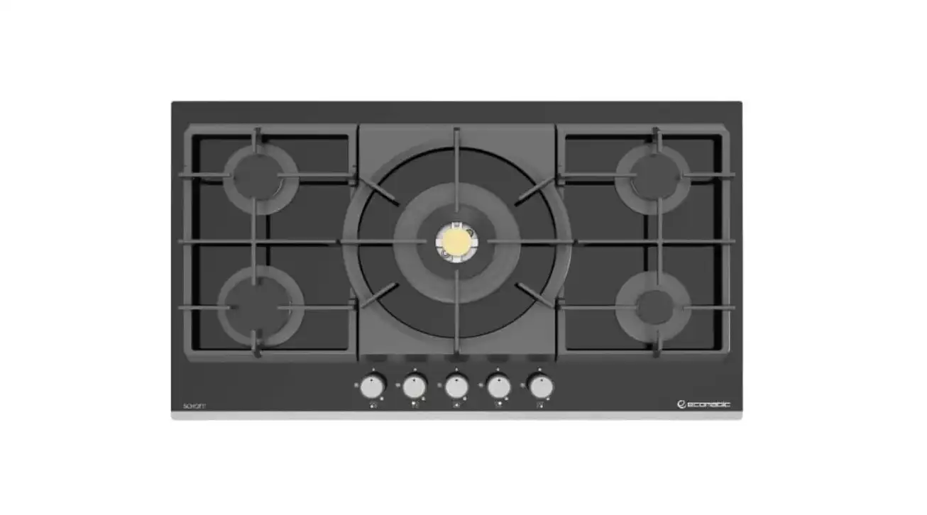 Ecomatic Bundel Of Built In Gas Hob, 5 Burner, 92 cm, Black Glass - S987XLC X-LARGE + Gas oven With Grill, 67 Liters, 60 cm, Black - G6444GT