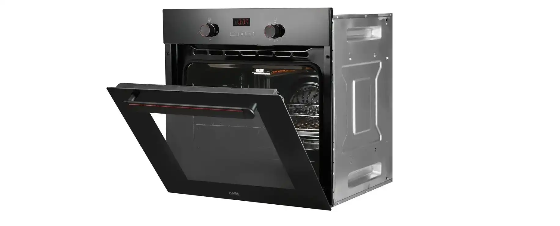 Hans Built-in Oven, 60 cm, Gas, Grill, Fan, Switches and Red LED Knob, Black Glass - HANS OGO204-20