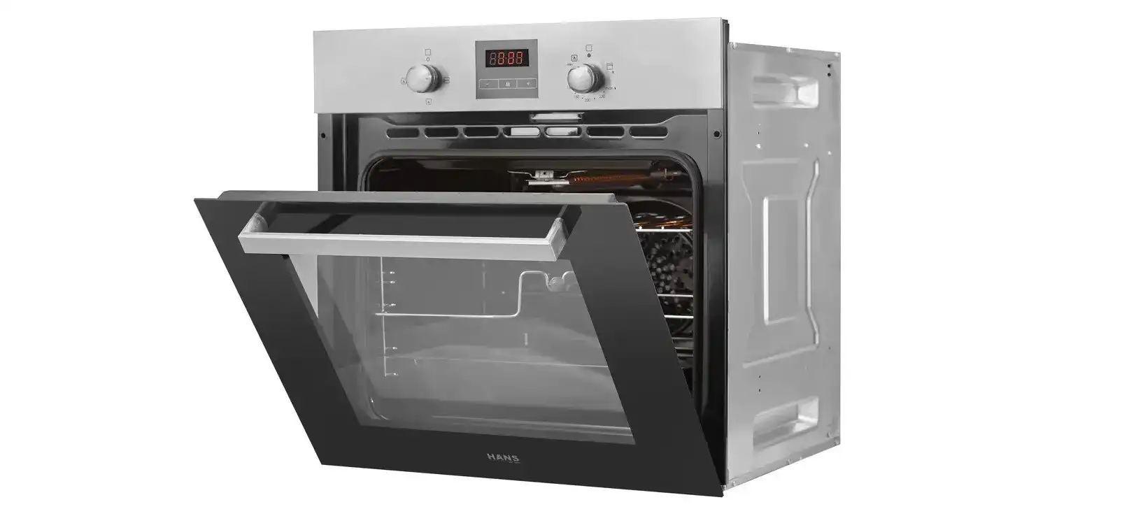 Hans Built-in Oven, 60 cm, gas, Digital, Grill, Fan, Silver / Black - HANS OGO202-10