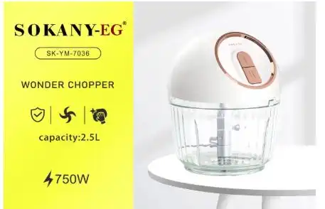 sokany Wonder Chopper, 2.5 L, 750-Watt, Glass Bowl, 2 Speeds, White - SK-7036