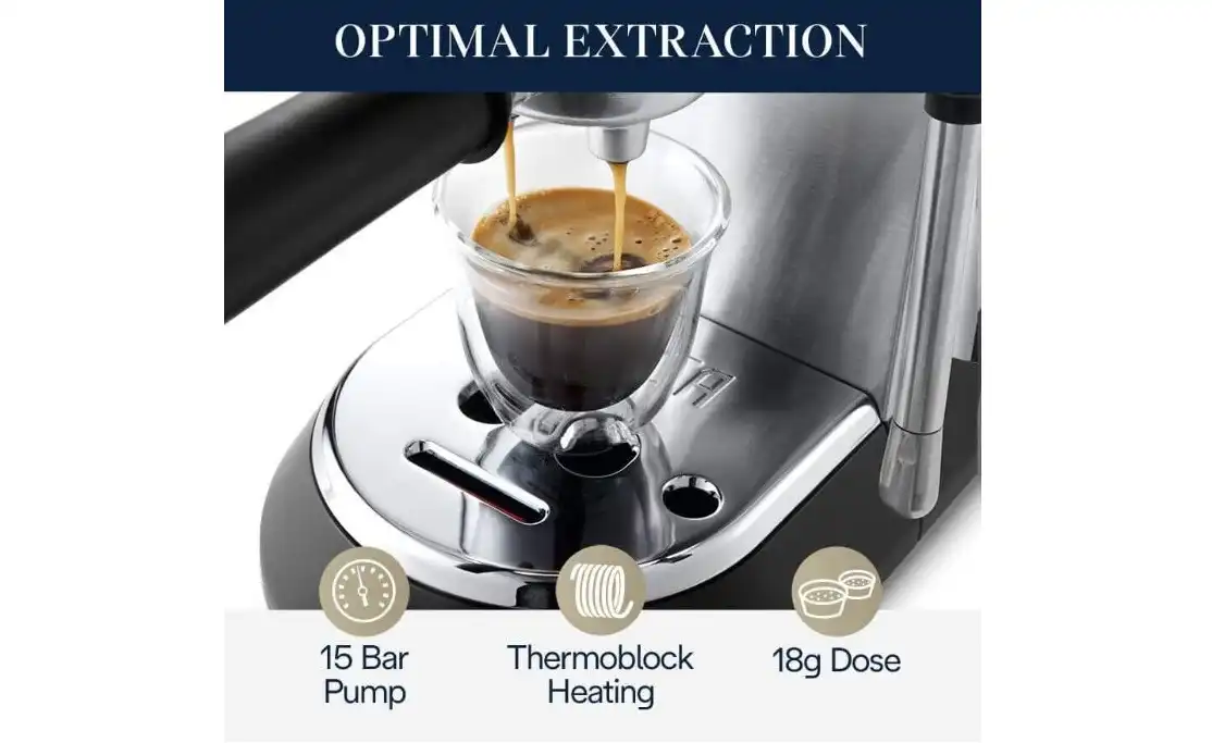 De’Longhi Dedica Arte Combination Coffee Maker, 1350 Watt, Silver - EC885.M