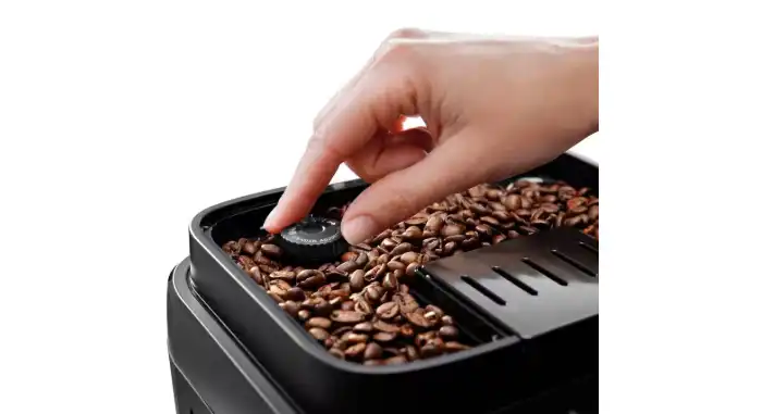 - The machine grinds coffee beans just before use to preserve the coffee's aroma and leaves minimal coffee residue.