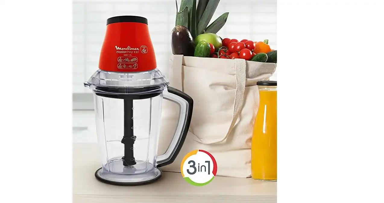 Moulinex Masterchop XXL Chopper, 500 Watt, 1.5 Liter. Enjoy chopping & mincing large quantities in one go. Explore the great performance of chopping thanks to 500 watt motor along with it's 4 sharp blades that help in effortlessly mince, chop and mix all kind of ingredients. Increase chopping power with Powelix Blades technology, which provides up to 30% faster performance (compared to DJ30) and smoother results. A simple pressure on the top for easy and quick results. XXL Chopper's high-capacity bowl helps you chop your solid materials up to 1.5 liters. It is easy to clean due to it's removable stainless steel blades also it's bowl is a dishwasher safe .XXL Chopper enables you to vary your daily pleasure while having fun cooking good food. Your time spent in the kitchen becomes easy with simple-to-use and effective way.