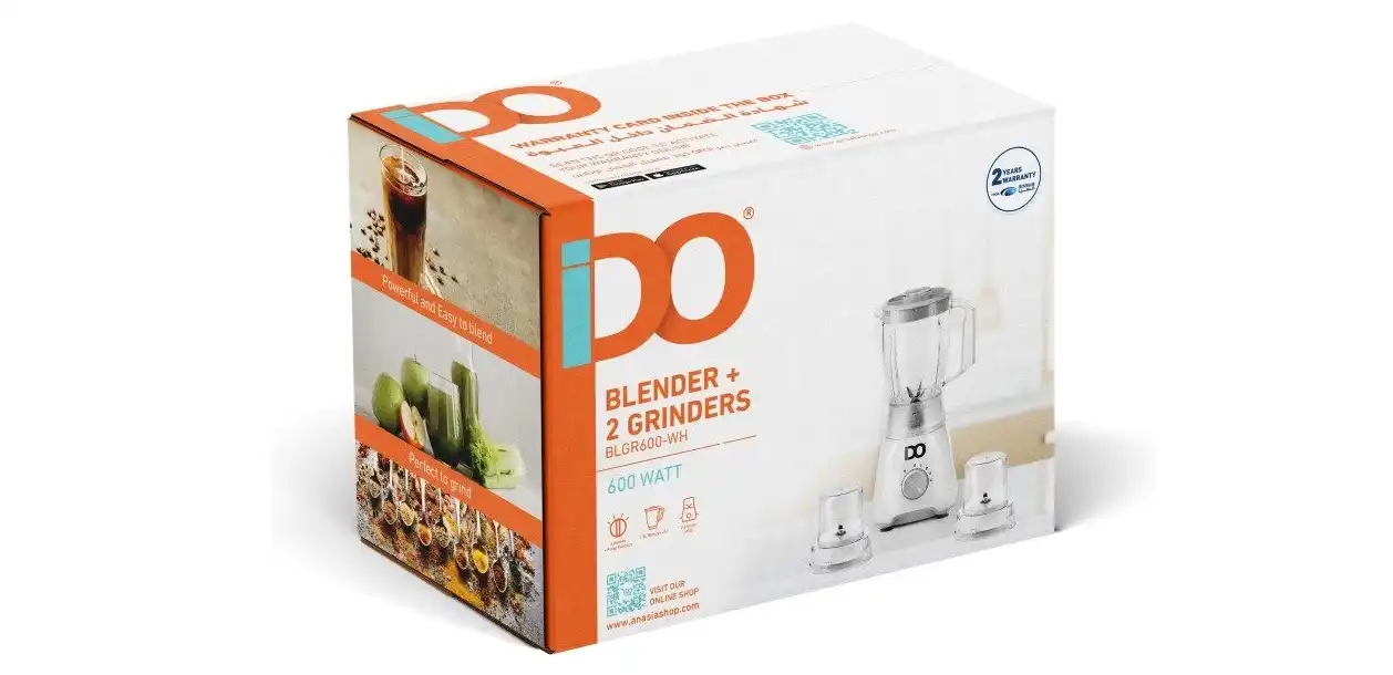 IDO Blender With 2 Grinder, 600 W, Pulse Function, White